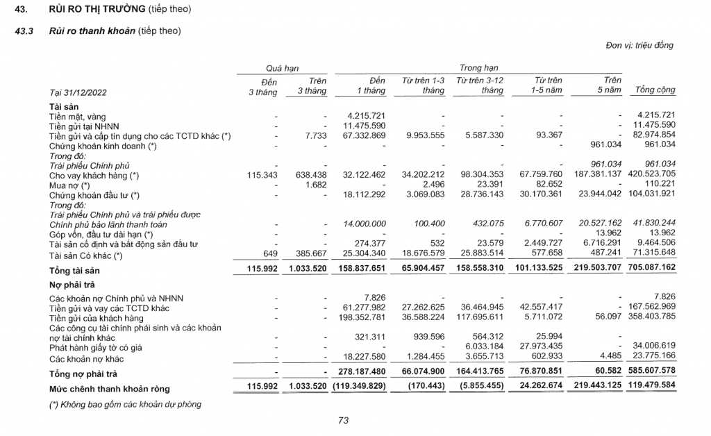 Thật ra là bình thường mình không đọc kỹ tới như vậy, nhưng tự nhiên mình thấy bất thường thật, tất nhiên thì Audit (Kiểm toán) hay Analyst (Nhà phân tích) thì coi mấy cái này là phần thừa. Nhưng đang dạy mà, nên cũng muốn xem TCB (Techcombank) ứng phó với mấy cái rủi ro thanh khoản năm ngoái ra sao thôi, có giống trong sách là thu hẹp các cái GAP (khoảng cách) lại không. Nhưng tóm lại là thấy báo cáo có vấn đề.