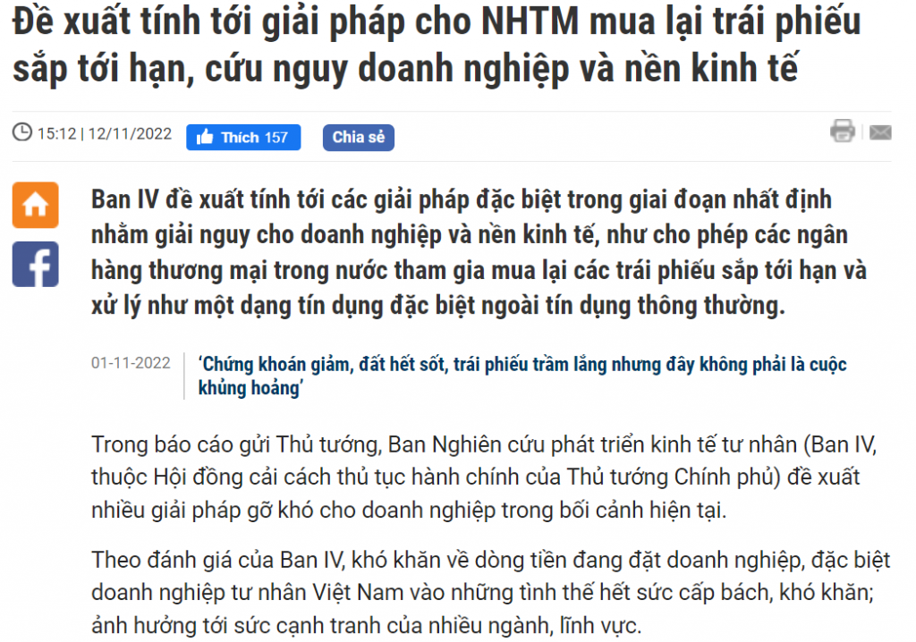 Bank (ngân hàng) funding (cung cấp vốn) cho khách mua lại trái phiếu trước hạn, trước mắt là lô sẽ đáo hạn trong Q4 (quý 4) và Q1 2023 (quý 1 năm 2023), rồi xích luôn phần tài sản cho cái này. À mà tất nhiên bank (ngân hàng) phải còn room (hạn mức) và khách phải ruột (khách hàng thân thiết), nhưng đừng quá ruột để vẫn đảm bảo quy định về giới hạn cấp tín dụng cho nhóm khách hàng không quá 25% vốn tự có. (Ờ mà nếu cố lách thì vẫn được). Nói chung đây là cách khả dĩ lúc này. Khổ nỗi là COF (Cost of Funds - chi phí vốn) cho đống funding (cung cấp vốn) này thực sự không rẻ, giờ lãi suất TT1 (thị trường 1) cận 10 rồi thì đống này 15-16% là ít.