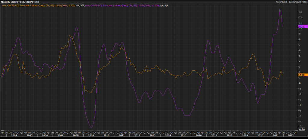 Tuy nhiên, hiện tại, có quá nhiều yếu tố khiến giá đầu vào tăng cao, đẩy PPI lên mức 13.5% vào tháng 10 năm ngoái, và hiện tại con số này là 10.3% YoY (Year-over-Year - so với cùng kỳ năm trước). Vấn đề của China nằm ở tổng cung, không phải tổng cầu. Do đó, việc hạ lãi suất không phải là giải pháp quan trọng nhất.