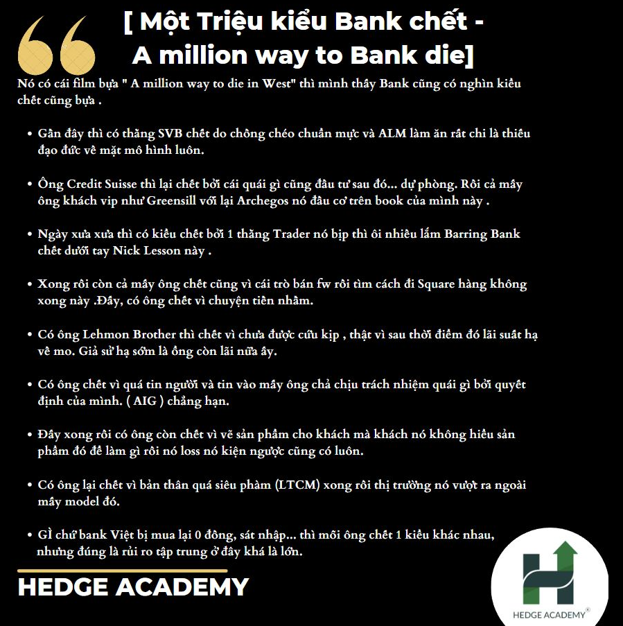 Có 1 triệu cách để bank có thể chết- nhưng chỉ có 1 cách để cứu nó sống – Part II