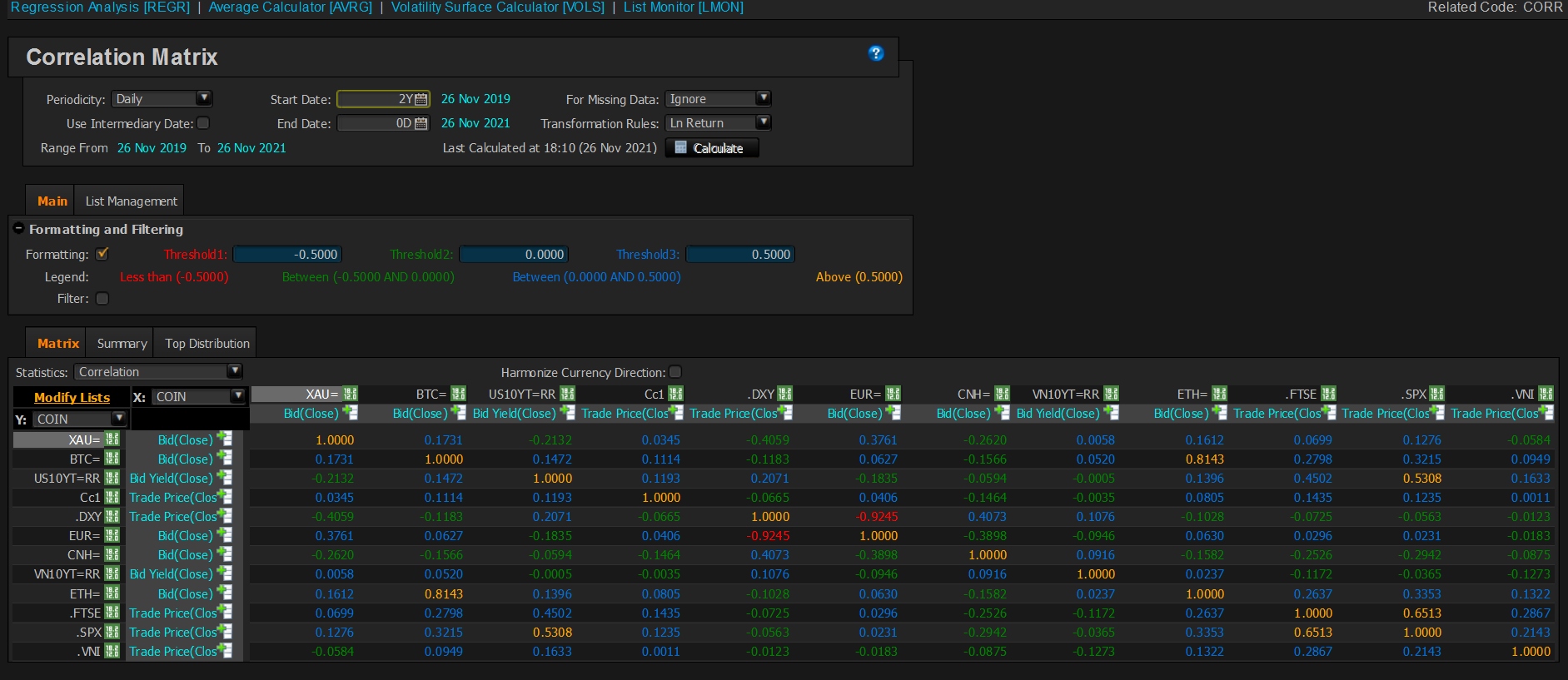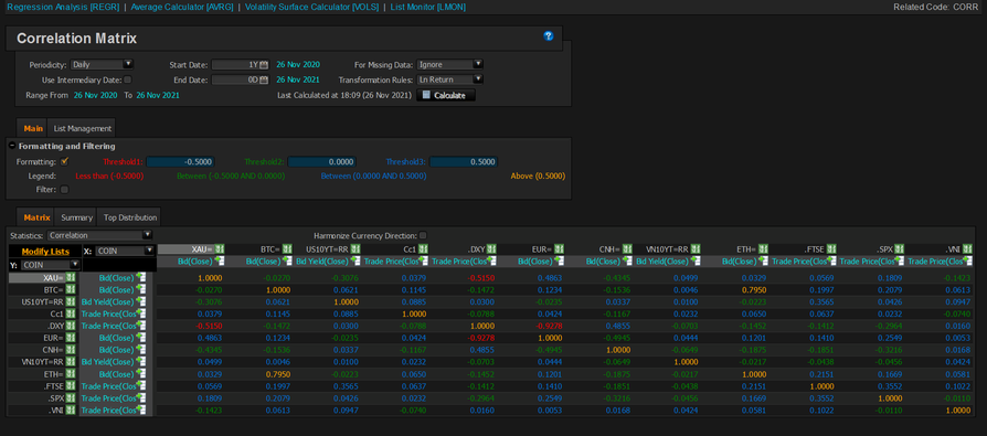 Có một cái thế này. Có một hệ thống quan điểm coin là vàng còn chứng khoán thì FOMO thì Hedge cũng có ngồi đo lường tương quan của các Asset Class này chút bao gồm: Vàng, Dầu, Coin (ETH, BTC), Chứng khoán (S&P, FTSE, VNI) và cả tiền tệ (USD,CNH, EUR). Thời gian từ 1-2Y Y 2 hình 1 hình 1 1 hình 2Y