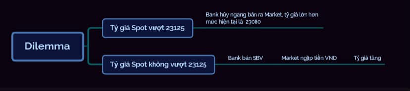 Vậy trong cả 2 trường hợp dù nếu bank không hủy ngang do inflow vào đủ và tràn lan bán SBV với giá 23125 hay bank hủy ngang do tỷ giá đã vượt 23125 thì tỷ giá nó vẫn cứ tăng.