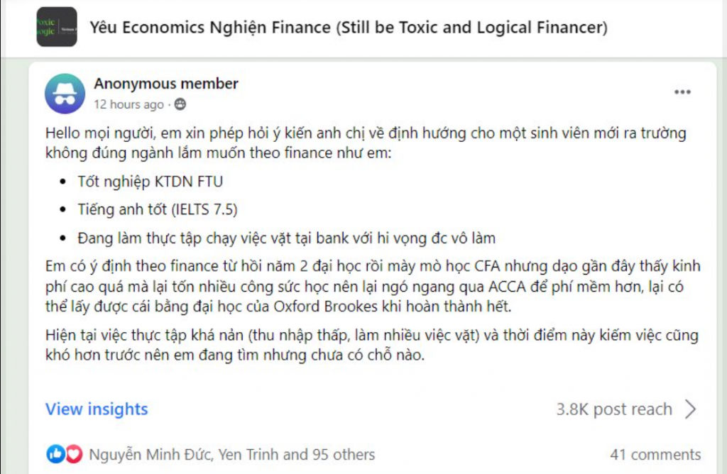 Mình thuộc thế hệ thứ 2-3 học CFA khi còn là sinh viên, và lúc đó CFA giống như "chiếc vé vào ngành" giúp mình xin việc dễ hơn. Ngày nay, sinh viên có điều kiện học tập tốt hơn, nên việc thấy CFA "bình thường" là điều dễ hiểu.