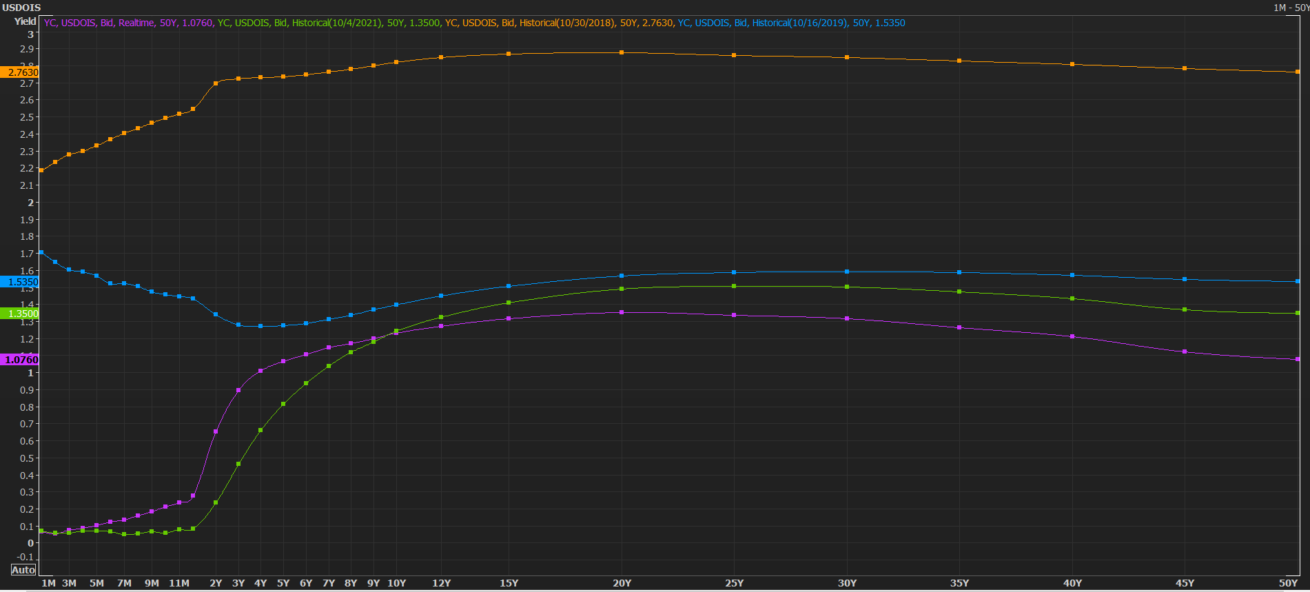 Quay lại lãi suất hiện tại mình lấy kỳ hạn 3Y fixing cho dễ so sánh. 3Y fix hiện tại ở mức 1.1 cách đây 1 tháng là 0.6 nhìn chung là trong 3 năm tăng thêm 2 đợt lãi nữa. Còn mức 2018 thì 3Y nó ở mức 2.76 nền lãi fixing lại 50Y cũng không lên tới mức đó. Tức là để quay lại các level lãi suất thì còn rất lâu rất lâu luôn.
