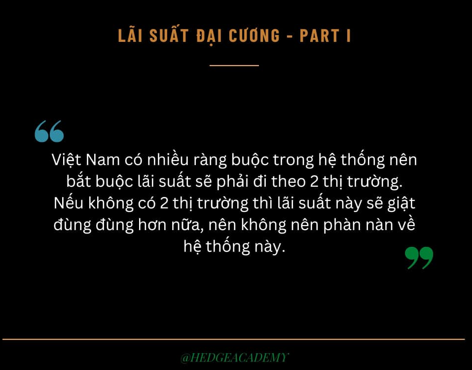 Đấy, nếu mà chỉ quy về 1 thị trường, thì chắc chắn là lãi suất nó cũng sẽ giật đùng đùng hơn nữa, nhưng để 2 thị trường thì nó lại tăng chi phí trung gian của toàn hệ thống lên. Nên tóm lại là cứ để thế, thì ai cũng có thể thở.
