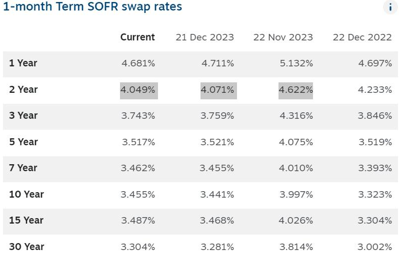 Cuối 2023, thị trường thậm chí còn pricing giảm mạnh hơn, khi các mức fixing (định giá lãi suất) cho 2-3Y (2-3 năm) đều giảm sâu so với lãi suất hiện tại. Pivot được kỳ vọng ngay trong tháng 2/2024.