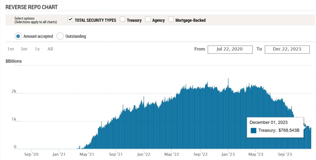 Nhưng nhìn chung, tiền không thiếu đến mức đó. RRP (Reverse Repurchase Agreement) của FED (Cục Dự trữ Liên bang Mỹ) – thứ tương tự Citad (cầu tín dụng liên ngân hàng) Việt Nam – cho thấy tiền còn lâu mới hết, trạng thái normalization (bình thường hóa) còn khướt mới đạt. Nên tiền dư chán. Vậy thị trường có đang kỳ vọng giống cuối 2022, khi pivot sớm không?