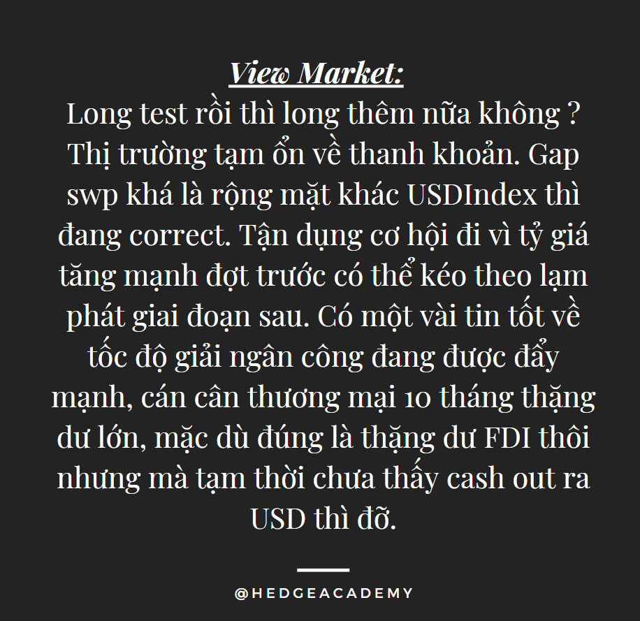 Rủi ro vẫn còn, ví dụ kinh tế Mỹ có vẻ tăng trưởng trở lại, đâm ra việc nâng lãi suất vẫn tiếp tục. View (quan điểm) tương tự 2018 là tới cuối năm mới ngừng. Trong nước, tiếp tới là việc tỷ giá trong khoảng thời gian gần đây tăng lên 9% khiến lạm phát là thứ khó tránh. Trời, cái này đau đầu. Cùng chờ xem market (thị trường) phản ánh như thế nào. Hiện tại gap (khoảng cách) lớn, thanh khoản ổn dần, SBV fixed (cố định) OMO mức 8, market (thị trường) có vẻ cho là ổn, thì market (thị trường) bảo thế là cao thì OK, tỷ giá sẽ được giải quyết nhanh thôi. Mình có để cái này ở dưới.