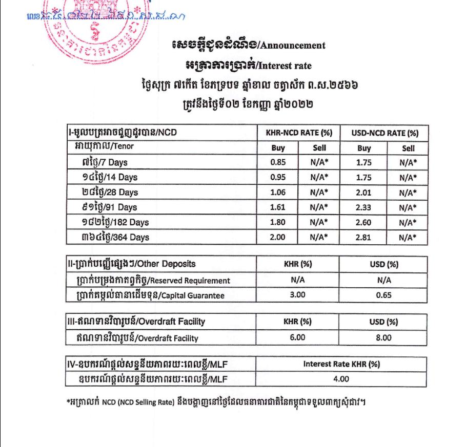 Điểm đặc biệt của lãi suất USD tại Campuchia