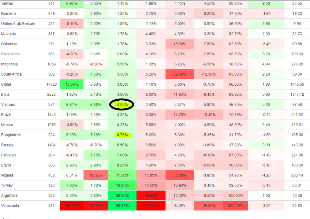 Sau 4 năm thiên thời địa lợi nhân hòa, SBV thật sự cần một nước đi táo bạo hơn, chính sách money defensive mấy năm qua rất là ổn và duy trì được vĩ mô ở cấp độ cao. Bây giờ muốn tránh khó khăn ngay lúc này, cần cả SBV và chính phủ bắt tay làm quả QE made in Vietnam thì mới ăn thua. Chứ đúng thật nếu so ra lãi suất VN rất cao, thuộc hàng cao nhất thế giới hiện tại, chắc chỉ sau mấy nước đang siêu lạm phát.