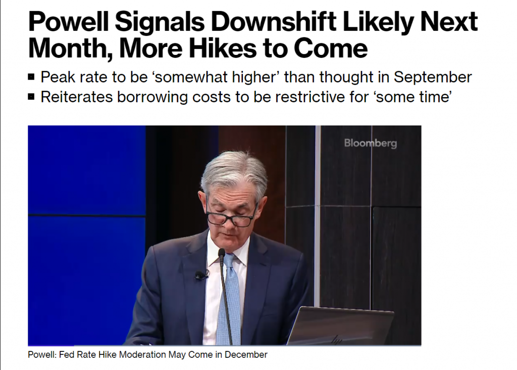 - Fed (Cục Dự trữ Liên bang Mỹ) vẫn bảo sẽ nâng lãi suất vào tháng 12 và chưa chắc thấy điểm pivot (điểm đảo chiều) đâu.