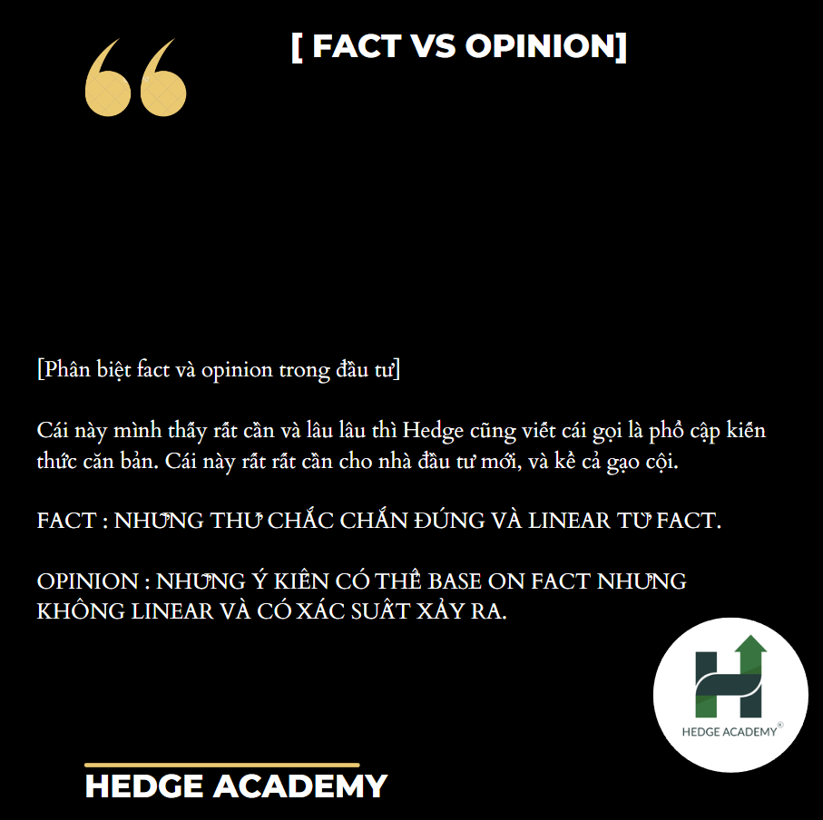 Cái này mình thấy rất necessary (cần thiết), và once in a while (lâu lâu), thì Hedge cũng viết cái gọi là phổ cập basic knowledge (kiến thức căn bản). Cái này very very necessary (rất rất cần thiết) cho new investors (nhà đầu tư mới), và even (kể cả) veteran investors (nhà đầu tư gạo cội).