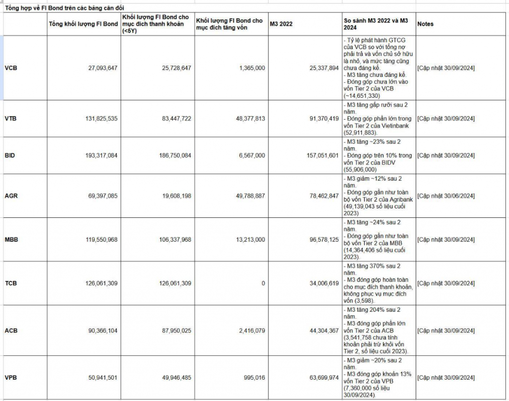 Trích bài viết cuối 2024: "Lấy ví dụ TCB (Ngân hàng Techcombank) đi, trong năm cho tới tháng 9/2024 thì nguồn vốn tăng nhiều nhất của TCB chắc chắn không phải huy động. Nguồn tăng nhiều nhất tới từ phát hành GTCG (Giấy tờ có giá - Valuable Papers, thường là trái phiếu hoặc chứng chỉ tiền gửi), (Mình hay gọi là M3). Trong 78k bio (78 nghìn tỷ VND) tổng tài sản tăng lên thì tổng phát hành tăng lên là 41k bio (41 nghìn tỷ VND) còn đâu là VCSH (Vốn chủ sở hữu - Equity) và huy động nếu xét ra trong thời gian 2 năm con số ngày của TCB là 370% từ cuối 2022 tới 2024. Có thể mình đang lấy một trường hợp hơi đặc biệt, tuy nhiên nếu xét ra trong top các bank gồm Big4 (bốn ngân hàng lớn) và top NHTM (Ngân hàng thương mại) mình hay gọi là nhóm lên Big thì việc tăng trong phát hành giấy tờ có giá là cao (riêng với case VPB (Ngân hàng VPBank) vì VPB trước đó có bán vốn và tăng trong VCSH). Vậy chung quy là gì? Là cơ cấu nguồn đang chuyển về dài hạn. Có nhiều lý do dẫn tới vấn đề này.