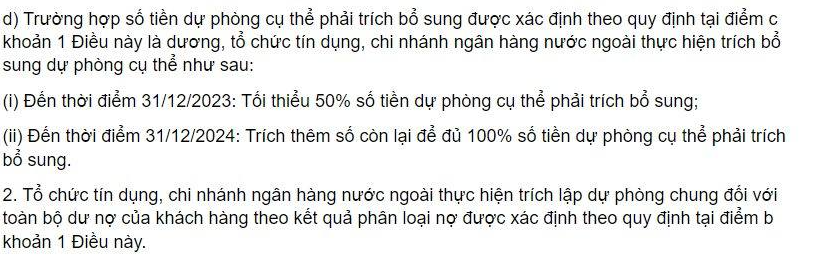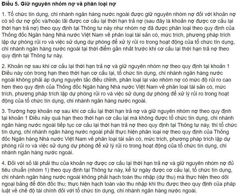 "Trường hợp khoản nợ sau khi cơ cấu lại thời hạn trả nợ và giữ nguyên nhóm nợ… quá hạn theo thời hạn cơ cấu lại mà không được tổ chức tín dụng, chi nhánh ngân hàng nước ngoài tiếp tục cơ cấu lại… thì tổ chức tín dụng, chi nhánh ngân hàng nước ngoài phải thực hiện phân loại nợ theo quy định của Thống đốc Ngân hàng Nhà nước Việt Nam về phân loại tài sản có, mức trích, phương pháp trích lập dự phòng rủi ro và việc sử dụng dự phòng để xử lý rủi ro…" (Hình 2)