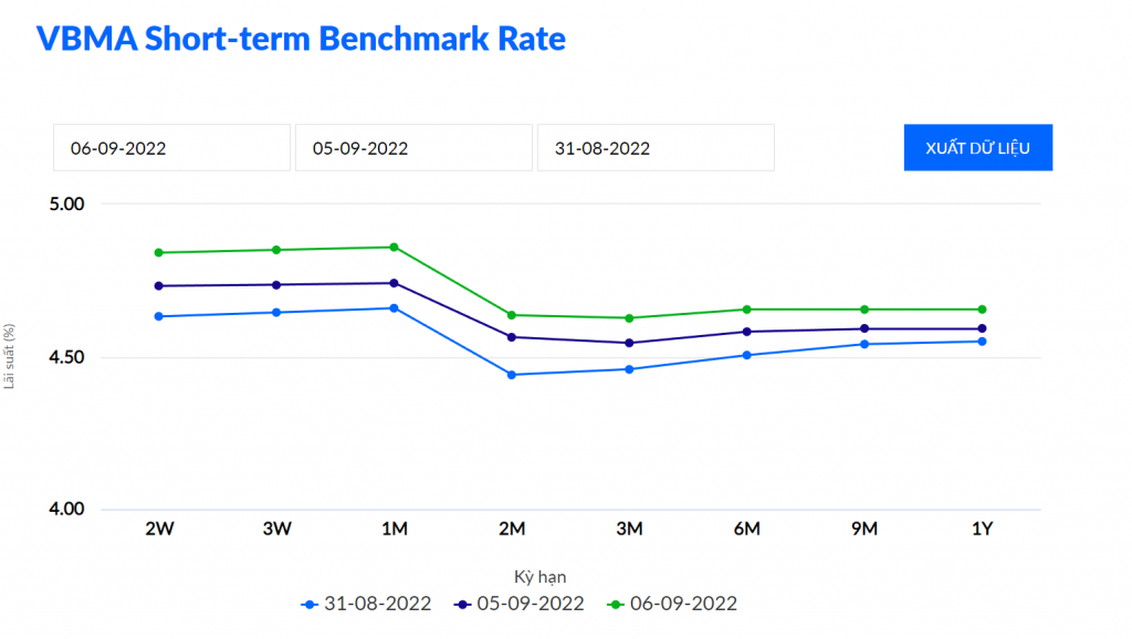 Nói một chút thì tỷ giá hiện tại là 23.545 VND/USD, có lúc lên tới 23.600 VND/USD, còn lãi suất thì inverse (đảo ngược xu hướng) như thế này đây. Đây là lãi suất quote (lãi suất niêm yết trên thị trường liên ngân hàng) nhé, tầm 5.2 - 5.3% ON, còn OMO (hoạt động thị trường mở) thì vào 15.000 tỷ VND với lãi suất 4.5%.