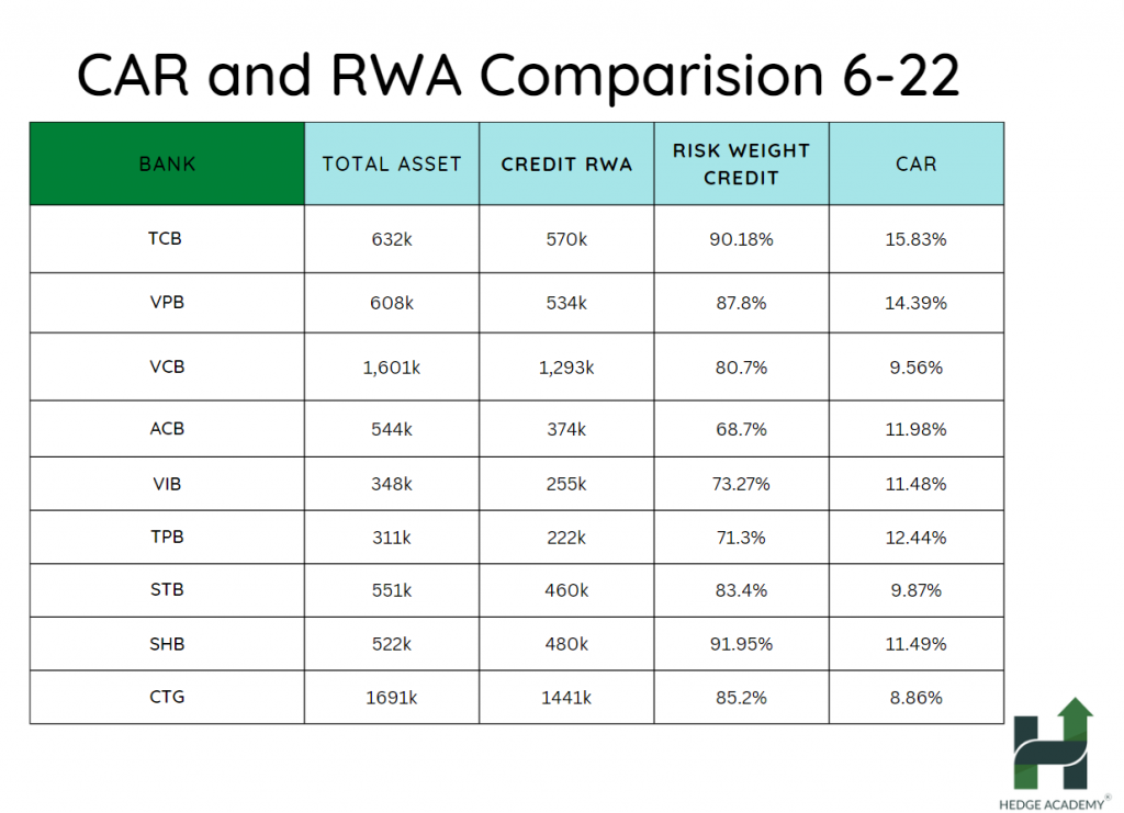 Đi kèm với việc RW (Trọng số rủi ro) tăng, thì việc CAR (Tỷ lệ an toàn vốn) lại cũng tăng nhẹ, chứ không phải là mức độ CAR (Tỷ lệ an toàn vốn) hệ thống giảm. Cái này nói chung thú vị, CAR (Tỷ lệ an toàn vốn) gia tăng thì cứ làm ăn mà không chết, chưa phải dự phòng nhiều thì CAR (Tỷ lệ an toàn vốn) cũng tăng. Chờ công bố này ở thời điểm 31/12 sẽ có nhiều câu chuyện để kể hơn, và có nhiều chuyện thủy triều rút để xem ai chưa mặc quần hơn. Nhưng nhìn chung, bank (ngân hàng) thì hồi (phục hồi), chứ danh mục là xấu đi.