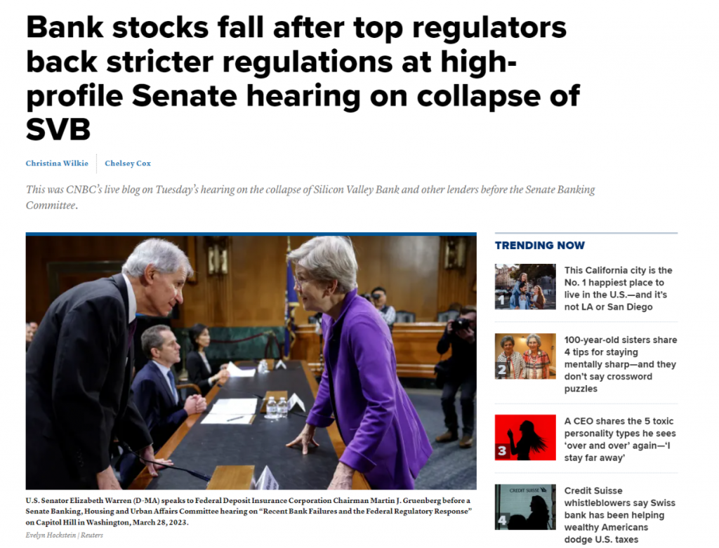 Sanator hỏi mấy câu exactly (y hệt) mình: Thấy quái nào mà SVB (Silicon Valley Bank), bank lớn thứ 16 nước Mỹ, lại không chịu mandatory capital and liquidity risks (rủi ro bắt buộc về vốn và thanh khoản). Và người ta hỏi cũng exactly (y hệt) shareholders (cổ đông) hôm trước: Sao risk (rủi ro) này được Fed (Federal Reserve - Cục Dự trữ Liên bang Mỹ) warned (cảnh báo) rồi mà các bạn không implement (thực thi)...