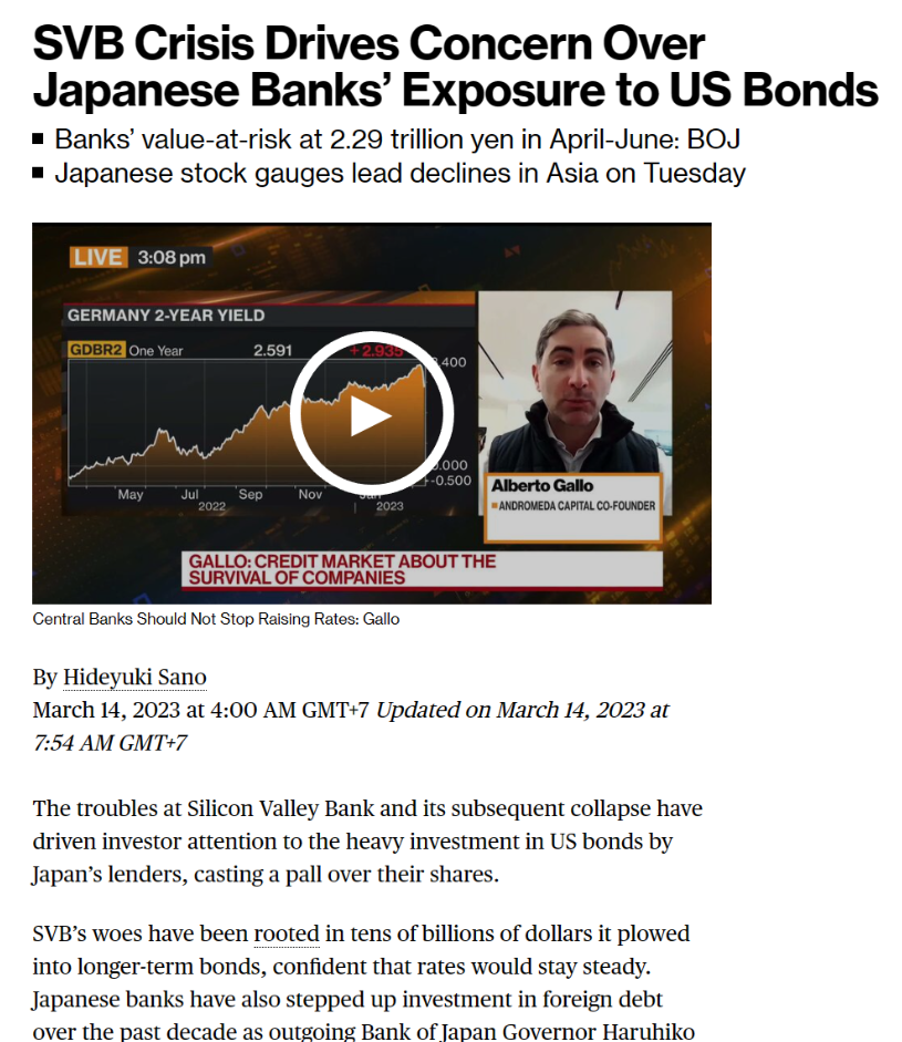 Thề với bạn, Nhật Bản (Japan - JP) chắc là hệ thống bị ảnh hưởng nhất. Bạn cứ tưởng tượng Nhật Bản là nước có debt-to-GDP ratio (tỷ lệ nợ trên GDP) cao nhất thế giới, rơi vào tầm 265%, thì bạn cứ tưởng tượng lượng Govbond (Government Bond - Trái phiếu chính phủ) trong hệ thống mà JP bank (ngân hàng Nhật) phải handle (xử lý), thì bạn sẽ thấy độ khủng. Rồi deposit rate (lãi suất tiền gửi) của Nhật Bản là dưới 0, giờ bị đẩy lên, thì những MUFG (Mitsubishi UFJ Financial Group), SMBC (Sumitomo Mitsui Banking Corporation), Mizuho (Mizuho Financial Group) còn khướt mới có tiền đi làm strategic shareholder (cổ đông chiến lược) ở Việt Nam.