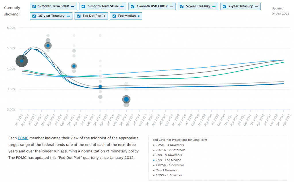 Năm nay, timing (thời điểm) cũng quan trọng lắm. Và cách nhìn của bạn nó cũng quan trọng nữa. Nhìn đây này, market (thị trường) đang pricing (định giá) hết quý 2/2023 là bắt đầu giảm lại lãi suất, và quá trình này kéo dài tới hết 2025 luôn. Bạn mà nhìn thấy cái này, chắc chắn là bạn long (mua) chặt, vì có pricing (định giá) chặt mấy thì giờ cũng sẽ có mức COF (Cost of Funds - Chi phí vốn) đạt max (tối đa) ở 5 tháng nữa, mà thị trường thì nó đi trước. Đấy, lại nói lãi suất đang 4%, thì swap rate (lãi suất hoán đổi) Việt Nam ở 3, như vậy nếu lãi suất Fed mà là 5%, thì swap (hoán đổi) dài hạn là 2. Mức này là mức chấp nhận được và nó là mức dài hạn khá cao luôn.