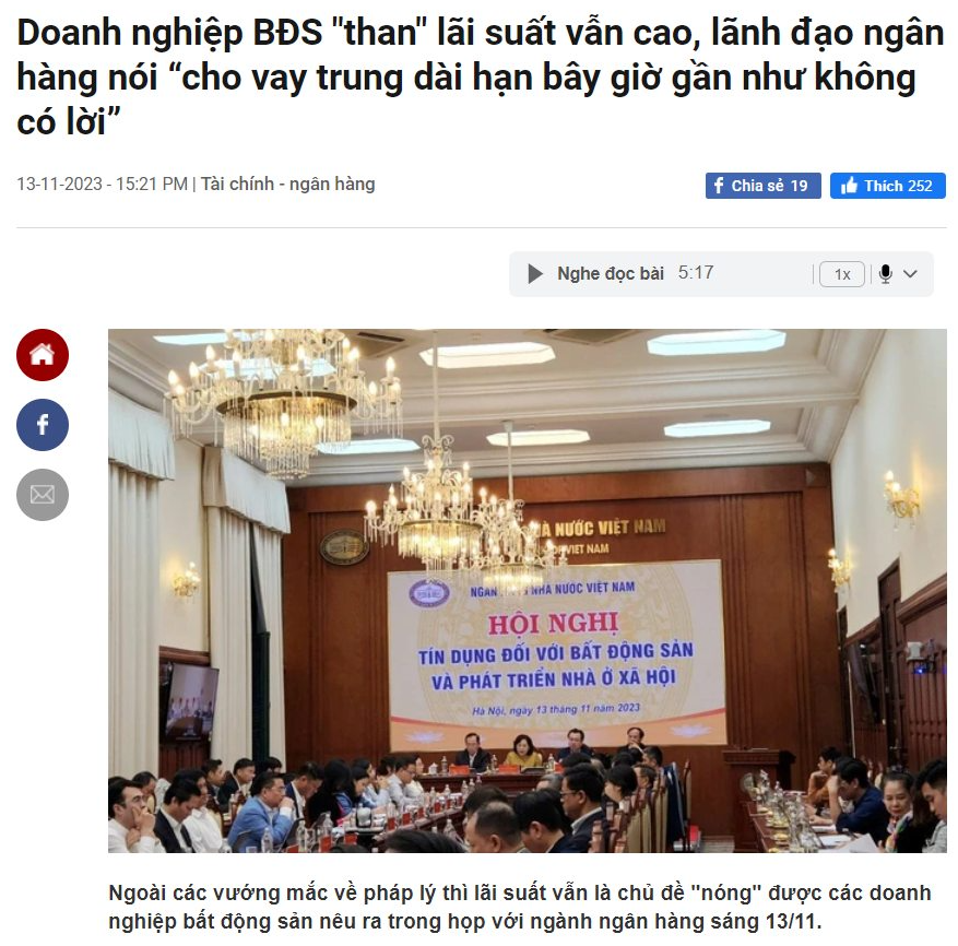 Chủ tịch GP Invest từng nói: “Chúng tôi đi vay, năm đầu được ưu đãi 8%. Hết tháng 6/2023 thì theo lãi suất thả nổi là 10,5%, lúc đầu là 11%. Đến tháng 10 vừa rồi vẫn tính chúng tôi 9,5%. Hiện lãi suất huy động là 4,75%, cộng biên độ 3% thì chỉ đến 8% là cùng. Chúng tôi cho rằng NHNN (Ngân hàng Nhà nước) đã chỉ đạo sát sao, hạ lãi suất điều hành, lãi suất tín dụng, nhưng doanh nghiệp vẫn phải tiếp cận lãi suất rất cao.”