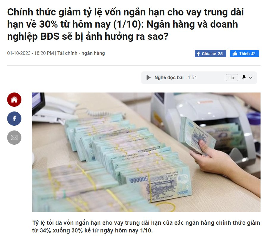 Rồi đến TT06 (Thông tư 06/2023), SBV (Ngân hàng Nhà nước) lại yêu cầu rà soát các khoản tiền gửi thứ cấp từ CTCK, làm việc xử lý tỷ lệ thêm phần nặng gánh. Cuối cùng, ngân hàng phải quay về cơ bản, tăng phát hành CD. Nhìn chung, đây là lộ trình kéo dài từ 60% đến nay là 30% – cả một lịch sử ngành ngân hàng. Hiện tại, mình không đánh giá việc này là positive (tích cực) hay nên làm. Nhưng nghĩ lại, sai nhiều lần rồi, hòa hoãn mãi, có lẽ nên kết thúc với SFL tại đây.