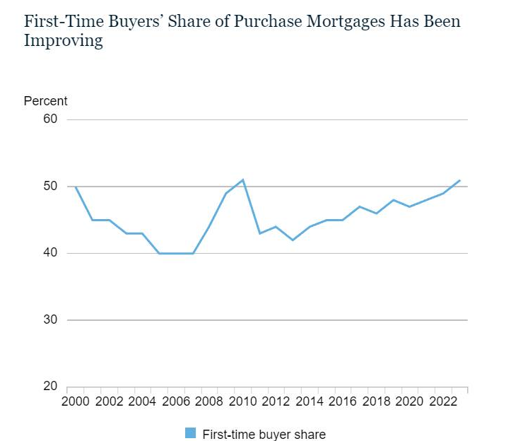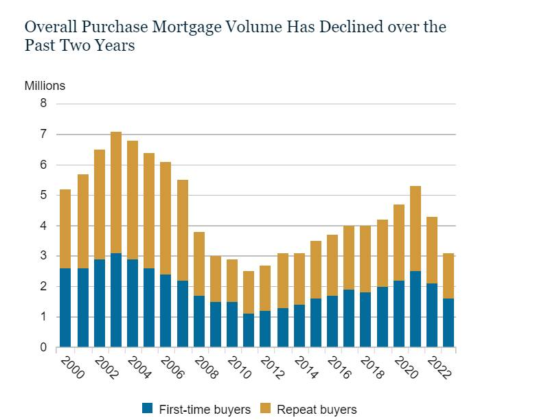 Giờ ở Mỹ, First Time Buyer (FTB – người mua nhà lần đầu) chỉ còn mức độ 24%, thấp nhất từ trước tới nay. Thêm nữa, độ tuổi trung bình mua nhà giờ đã là 38 tuổi, lớn hơn rất rất nhiều so với trước đây (31 tuổi). Và nữa, ai mua được nhà là người ta mua hết rồi, số còn lại phải đi thuê vì không trả nổi downpayment (tiền đặt cọc), chỉ đâu đó 3.5% giá trị, trong khi 90% người đi thuê nhà không đủ trả con số downpayment này. Người mua nhà lại còn vay nhiều hơn nữa, tỷ lệ vay mortgage (vay thế chấp) của FTB giờ tầm hơn 50%, lớn như thời khủng hoảng.