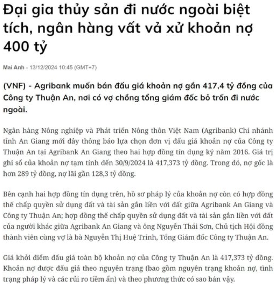 Mình muốn bổ sung thêm một hệ quả của việc nuôi zom (zombie – công ty zombie, doanh nghiệp chỉ sống nhờ gia hạn nợ). Ảnh dưới đây là một trường hợp cực kỳ rõ về tính lỏng (liquidity – thanh khoản) trong cân đối. Với quy trình ở Việt Nam, nếu chưa phải nhóm 5 (nhóm nợ xấu cao nhất), thì chưa được xử lý tài sản. Tức là theo quy định, phải mất 1 năm trời từ khi không đòi được nợ mới bắt đầu xử lý tài sản, và xử lý xong mới được write-off (xóa sổ) khỏi cân đối. Hay như trường hợp dưới đây, 2 vợ chồng mất tích từ 2016 tới tận 2024 mà vẫn chưa bán nổi và xử lý tài sản. Có rất rất nhiều case (trường hợp) như vậy trong hệ thống. Cách xử lý này vô tình làm bảng cân đối trở nên vốn to nhưng tài sản lại “lớn” (không hiệu quả).