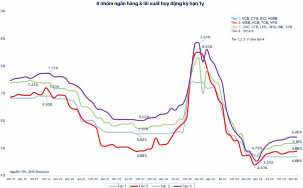 Nếu thanh khoản dư thừa, đây là nhóm có COF (Cost of Funds – chi phí vốn) rẻ nhất. Không như Big4, cấu trúc loan (khoản vay) của nhóm Tier 2 đương nhiên nhiều khoản dài hơn, nên việc cân đối chắc chắn sẽ đau đầu phần SFL (Short-term Funding for Long-term – tài trợ ngắn hạn cho dài hạn). Nhưng trong thời kỳ thanh khoản như 2023 hay Covid (2020-2021), chi phí và cân đối của Tier 2 là tối ưu, lãi suất huy động còn rẻ hơn Big4.