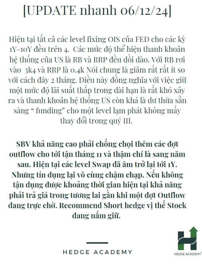 Cái chính trong các recommend xoay quanh vài khái niệm như exposure (độ phơi nhiễm), long-short-square (mua-bán-cân bằng), và quan trọng nhất là general liquidity (thanh khoản chung - bao gồm nội và ngoại suy) cùng balance (cân đối, tức T-account - tài khoản chữ T). Mình không chú trọng tập trung vào ngành nào, mà xem xét tổng quan nhất có thể, dựa trên các biến số macro (tỷ giá, lãi suất, lạm phát, cung tiền…), mối tương tác và liên hệ giữa các thị trường (TT vốn - TT tiền tệ, cổ-trái, TT1-TT2 - thị trường 1 và 2), rồi xác lập các mối quan hệ này hoặc vấn đề cân đối ảnh hưởng thế nào với nhau. Xác định điểm mù hoặc phỏng đoán dựa trên dự báo nào…